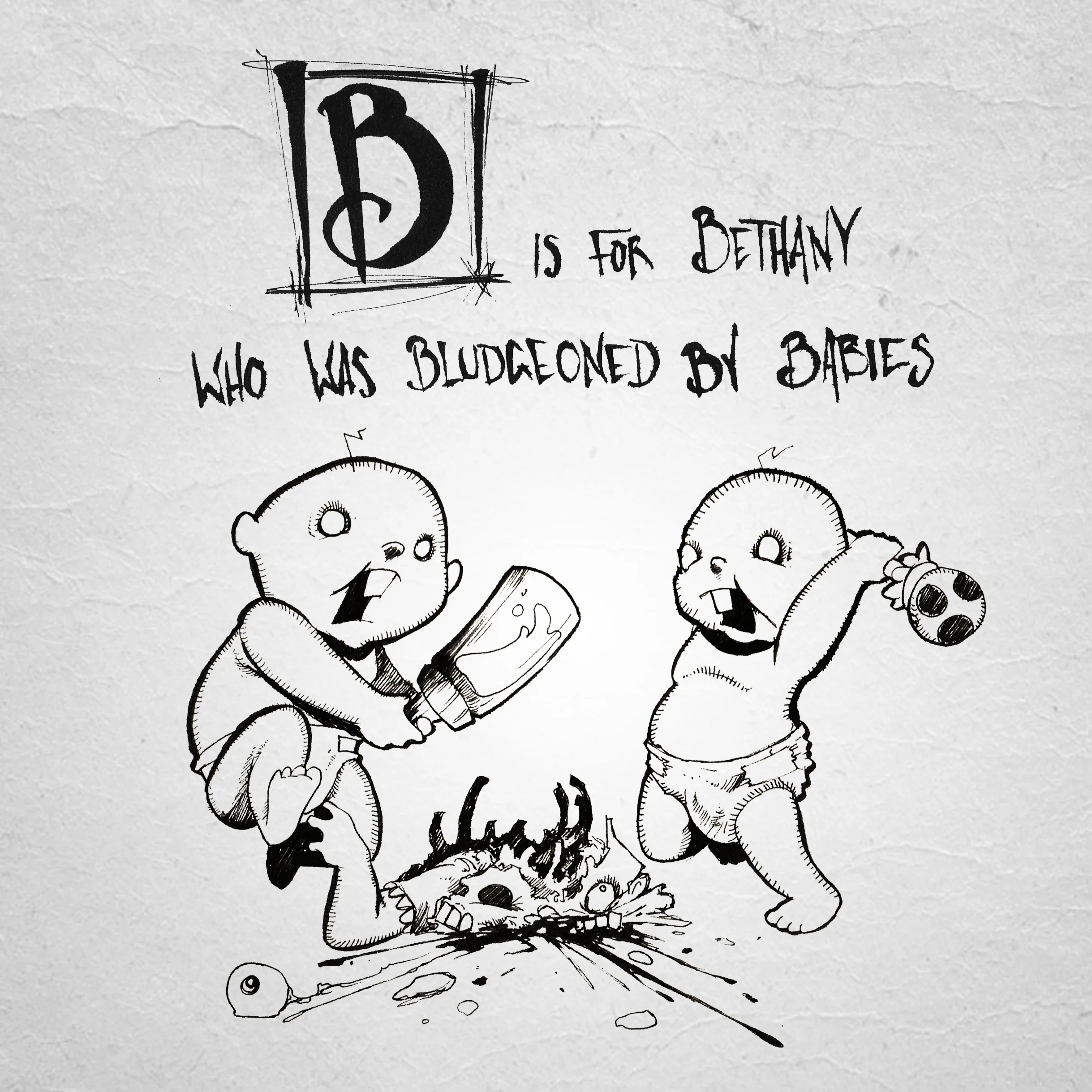From the beautifully dark mind of Edward Gorey, the GashlyCrumb tinies was a wonderfully humorous dark take on the Alphabet. Now years later I wanted to show my appreciation with my own dark and grim version featuring untimely deaths and torture in somewhat humorous ways. Because what is life without a little dark humor?